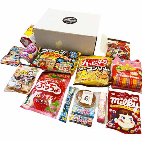 Per tutti coloro che vogliono provare i snack dolci giapponesi è la volta buona. Una scatola contenente un mix di snack, dorayaki (merenda di Doraemon), senbei (crackers di riso), caramelle, dolci al cioccolato, bibite e biscottini!