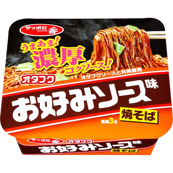 Ingredienti: noodles fritti (farina, oli e grassi vegetali, sale, uovo in polvere), salsa (salsa, lardo, oli e grassi vegetali, oli e grassi per condimenti), cavolo, soboro di carne stagionata di pollo / maiale, lattuga di mare, palamita essiccata, sardine essiccate, sezione sgombro / amido modificato, colorante caramello, carbonato di calcio, condimento (amminoacidi, ecc.), addensante (amido modificato, tamarindo), kansui, lecitina, fragranza, antiossidante (vitamina E), vitamina B2, vitamina B1, estratto di spezie, colorante paprika.