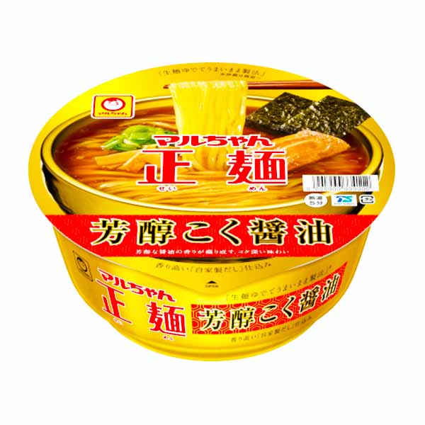 Ingredienti: noodles (farina di frumento, amido, sale, konjac, fibra alimentare di soia, proteine vegetali, olio e grasso vegetale), condimenti (salsa di soia, estratto di pollo, olio vegetale, grasso di maiale, condimento fermentato, zucchero, sale, spezie, estratto di frutti di mare, idrolizzato proteico, estratto di lievito), kayaku (maiale alla griglia, menma, cipolla, agar, destrina) / amido lavorato, condimenti (aminoacidi, ecc.), spirito di sake, kansui, lecitina, carbonato di calcio, antiossidanti (vitamina C, vitamina E), polisaccaridi addensanti, colorante di seppia, regolatore di pH, colorante di caramello, spezie, vitamina B2, vitamina B1.