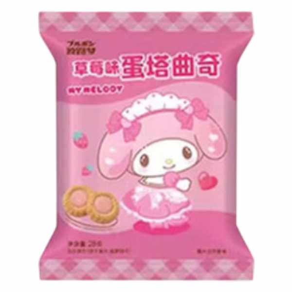 Lasciati conquistare dalla dolcezza dei biscotti alla fragola Bourbon, racchiusi in una simpatica confezione decorata con My Melody, l’iconico personaggio Sanrio amato da grandi e piccini. Questi deliziosi biscotti croccanti, ripieni di una morbida crema al gusto di fragola, sono lo snack perfetto per una pausa leggera, gustosa e… kawaii!