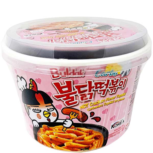 Torta di riso con il popolare sapore di pollo e carbonara piccante ! Il topokki o tteokbokki è un piatto coreano molto amato e famoso che ha una consistenza extra gommosa. Goditi la combinazione del sapore della carbonara e torta di riso gommose in una ciotola istantanea. Veloce e facile da preparare in qualsiasi momento, ci voglio solamente 3 1/2 minuti !