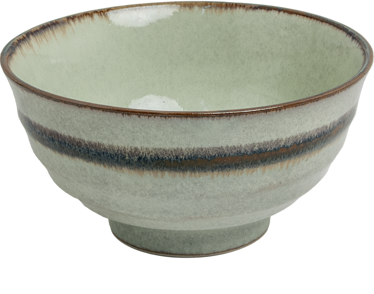 Ciotola giapponese in ceramica dalle tonalità verde chiaro con eleganti sfumature naturali, perfetta per ramen, udon o piatti donburi.