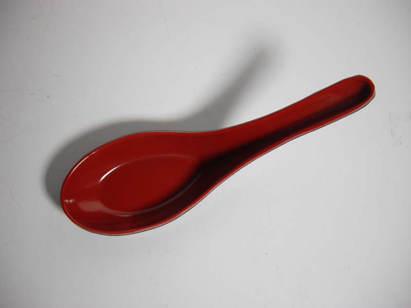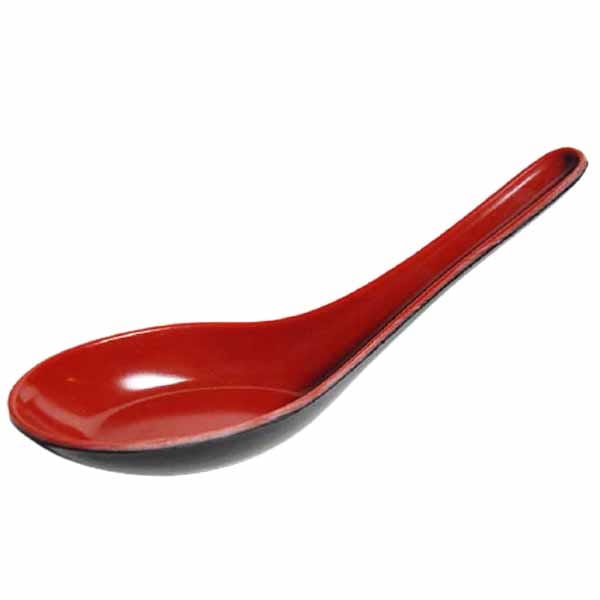 Cucchiaio oriente style in melamina, colore interno rosso laccato, parte esterna colore nero, molto resistente a urto, igienico e di facile pulizia