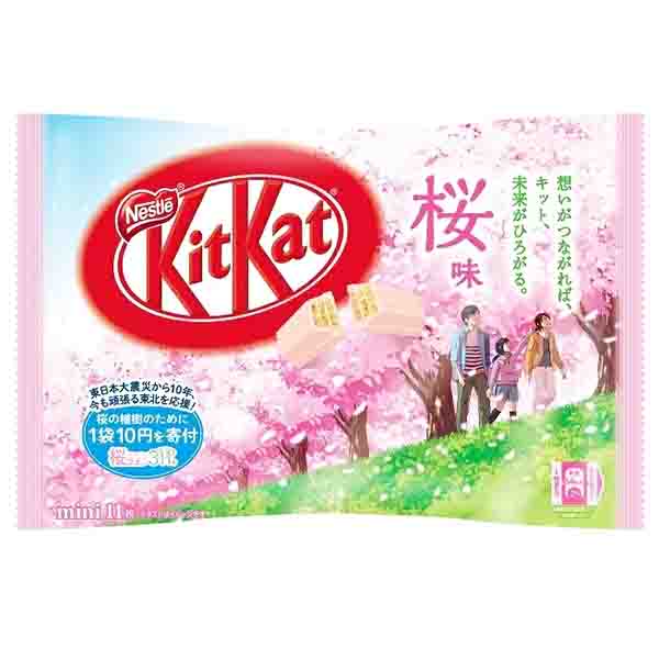 Kitkat giapponese al gusto sakura, contiene ben 11 mini kitkat monoporzione da poter mangiare dove e quando vogliate ! Gustosi strati di wafer con polvere di foglie di sakura, croccanti e ricoperti di cioccolato bianco aromatizzare al sakura !