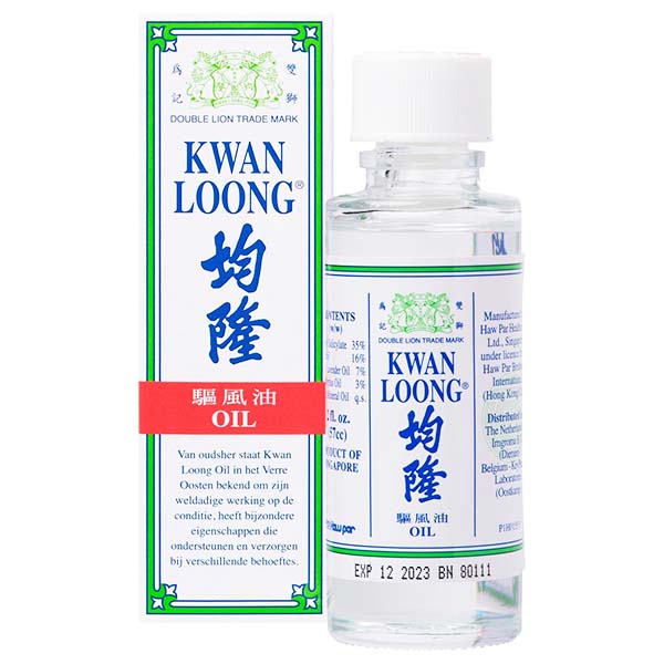 Una bottiglia sigillata di KWAN LOONG OIL Olio aromatico per alleviare il dolore per il sollievo temporaneo di dolori minori e dolori muscolari e articolari associati a semplici mal di schiena, artrite, lividi, distorsioni e stiramenti.
