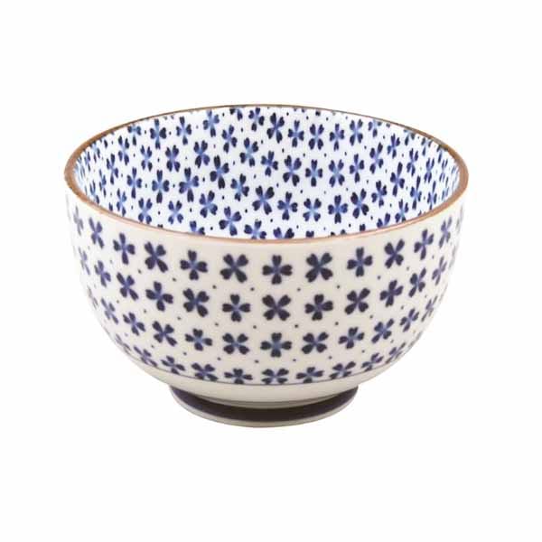Ciotola di ceramica di altà qualità con decorazioni di fiorellini di colore blu.