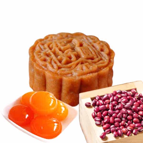 Ripieno con marmellata dolce di fagioli azuki rossi e tuorlo intero d'uovo d'anatra marinata (l' uovo d' anatra viene messo in salamoia in acqua salata per un mese). Viene utilizzato solo il tuorlo per la mooncake.