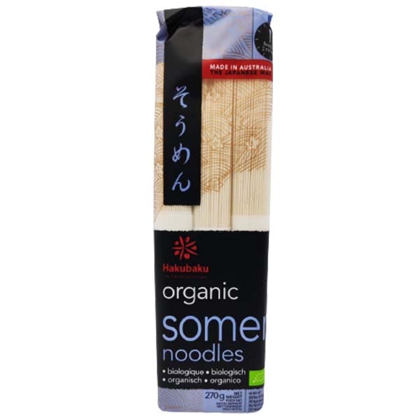 Hai voglia di noodles giapponesi ma non hai tempo di prepararli? Non preoccuparti, abbiamo la soluzione per te: i Somen Noodles biologici di Hakubaku. Queste tagliatelle sottili e delicate sono fatte solo con ingredienti naturali: farina di grano biologico, acqua e niente sale. Sono prodotti in Australia con il rispetto della tradizione giapponese.