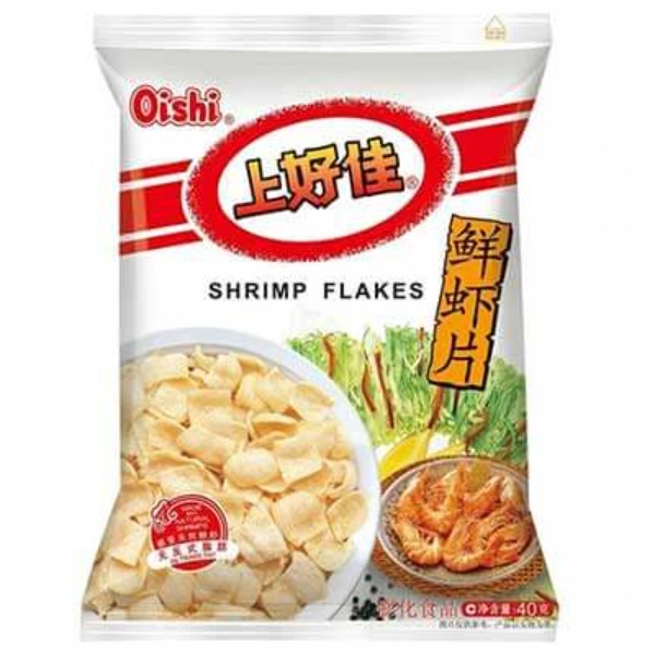 Snack croccante a base di gamberi dal sapore intenso e autentico. Le Shrimp Flakes di Oishi combinano la leggerezza di una chips con il gusto ricco del mare, per uno spuntino salato irresistibile.