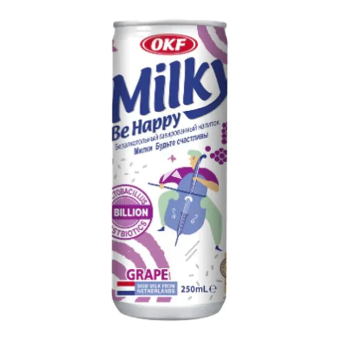 Okf Milky Be Happy Grape Flavor 250 ml sperimenta e gusta con OKF Milky Be Happy Grape, una bevanda che ti farà sorridere ad ogni sorso. Questa bevanda eccezionale incanta il palato con la sua bontà ricca e cremosa