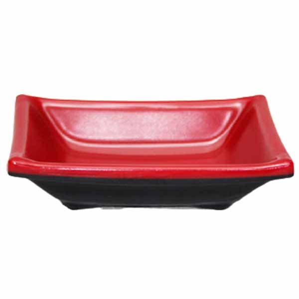 Ciotolina Porta Salsa di soia in melammina di buon spessore materiale resistente ed igienico colore rosso laccato interno ed all' esterno di colore nero.