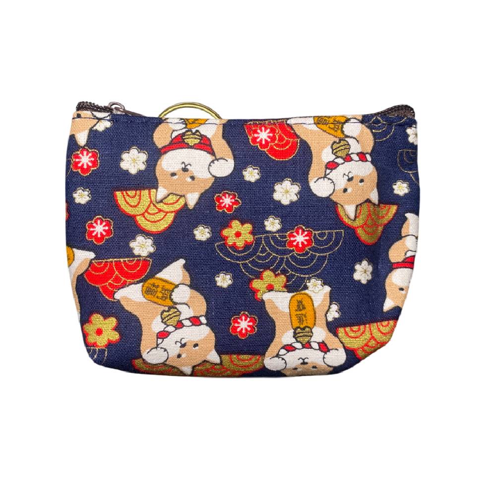 Portamonete blu con tanti Shiba Inu e fiori, 12x9x2.8cm