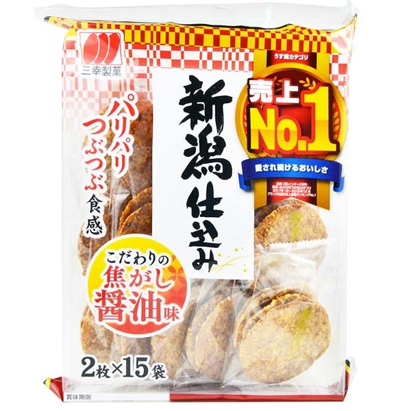 Senbei condito due volte con salsa di soia tamari e salsa di soia scura per aggiungere profondità al gusto, la salsa di soia viene tostata moderatamente per renderla fragrante. Contiene 30 senbei suddivisi per 2 confezionati.