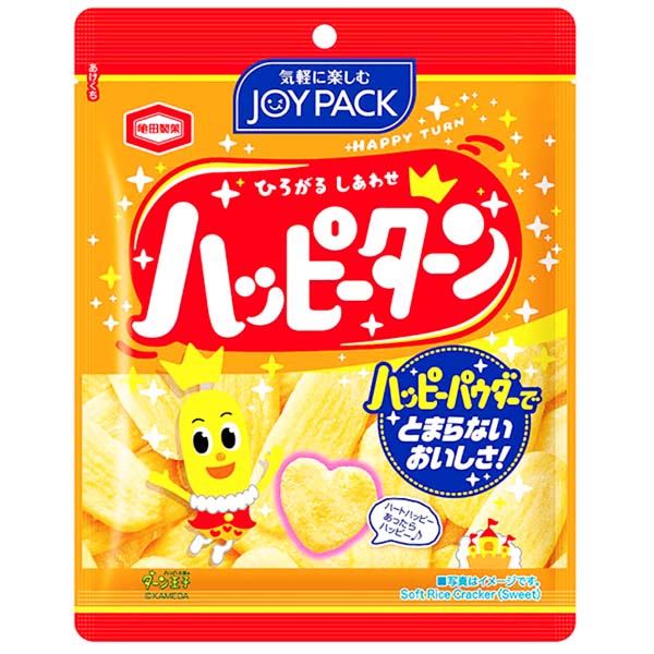 Senbei Happy Turn cracker di riso morbido e dolce, potrebbe essere incluso un senbei a forma di cuore come oggetto fortunato.