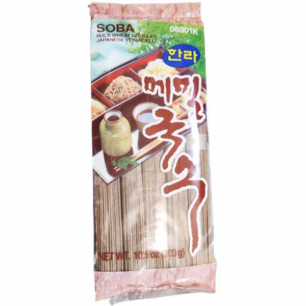 - Mettere 2 mazzetti (60 g x 2) di soba (spaghetti di grano saraceno) in acqua bollente e mescolare delicatamente per 5 minuti.