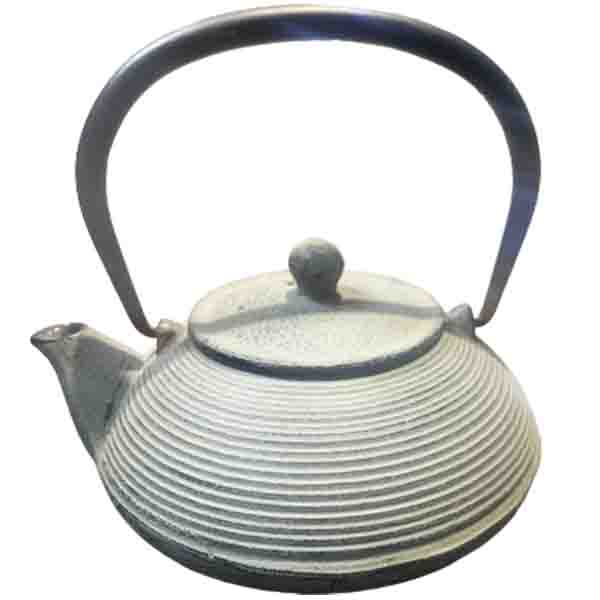 Teiera giapponese in ghisa, in colorazione grigia con la maniglia nera, la ghisa mantiene il calore più a lungo rispetto ad altri materiali senza spargersi sull'impugnatura. Una teiera in ghisa è il materiale migliore per preparare il tè. All'interno della teiera non è smaltato.
