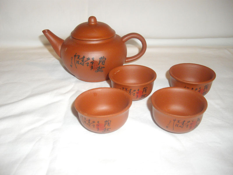 Set teiera per cerimonia del tea cinese in terracotta per gong fu cha con 4 tazzine