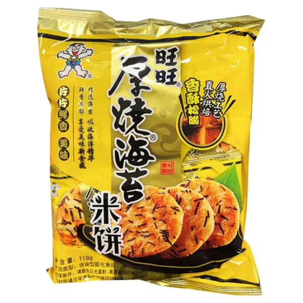 Deliziosi cracker di riso croccanti e tostati, arricchiti con fiocchi di alga nori per un sapore umami unico. Snack tradizionale asiatico, perfetto da gustare da solo o accompagnato a tè verde