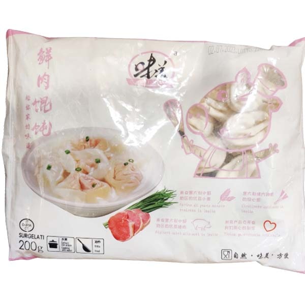 Ingridienti: farina di grano tenero, carne di maiale, acqua, grasso di maiale, semola di grano duro, cipollotto, salsa d'ostrica, zenzero, preparato per brodo (soia), olio di soia, olio di sesamo, brodo granulare di pollo (uova), esaltatore di sapidità E621,sale, zucchero, spezie.
